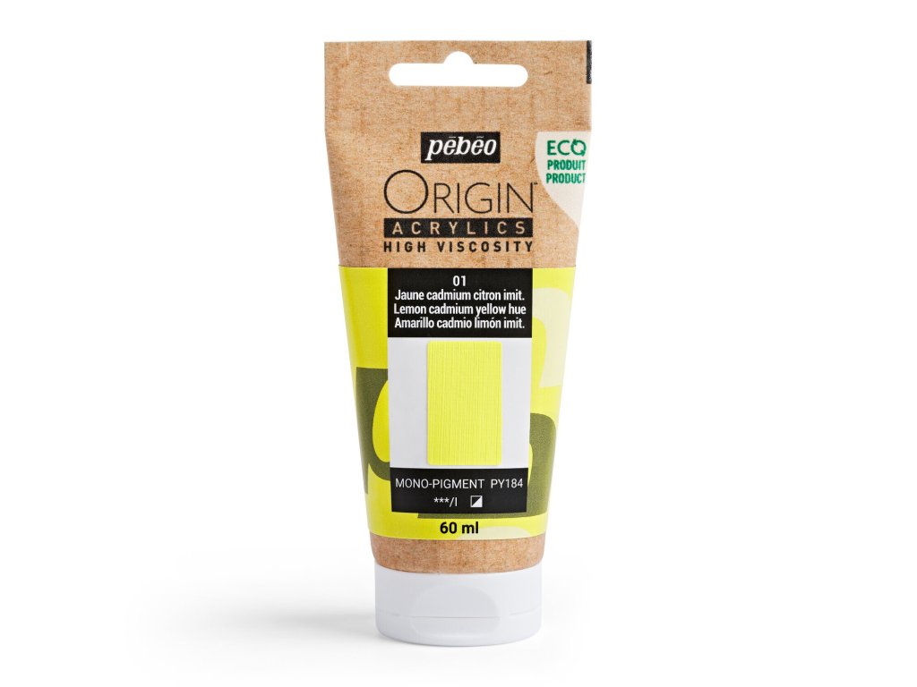 Řada Pébéo Origin Acrylics je v současné době nejekologičtější volbou na trhu akrylových barev. Barvy jsou baleny ve speciálním Eco-Design obalu, při jehož výrobě se používá o 59 % méně plastu než při výrobě klasické plastové tuby. Zároveň je v celém procesu výroby dbáno na to, aby se co nejvíce minimalizovali zbytečné zdroje a podpořila se cirkulární ekonomika. Pigmenty jsou pečlivě vybírány z co nejbližších evropských zdrojů, aby byl jejich převoz co nejkratší a dosáhlo se tak co nejnižší uhlíkové stopy.