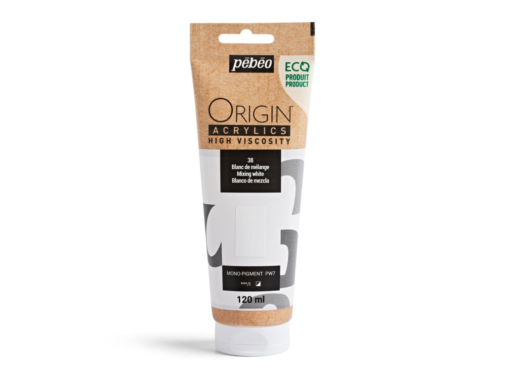 Řada Pébéo Origin Acrylics je v současné době nejekologičtější volbou na trhu akrylových barev. Barvy jsou baleny ve speciálním Eco-Design obalu, při jehož výrobě se používá o 59 % méně plastu než při výrobě klasické plastové tuby. Zároveň je v celém procesu výroby dbáno na to, aby se co nejvíce minimalizovali zbytečné zdroje a podpořila se cirkulární ekonomika. Pigmenty jsou pečlivě vybírány z co nejbližších evropských zdrojů, aby byl jejich převoz co nejkratší a dosáhlo se tak co nejnižší uhlíkové stopy.