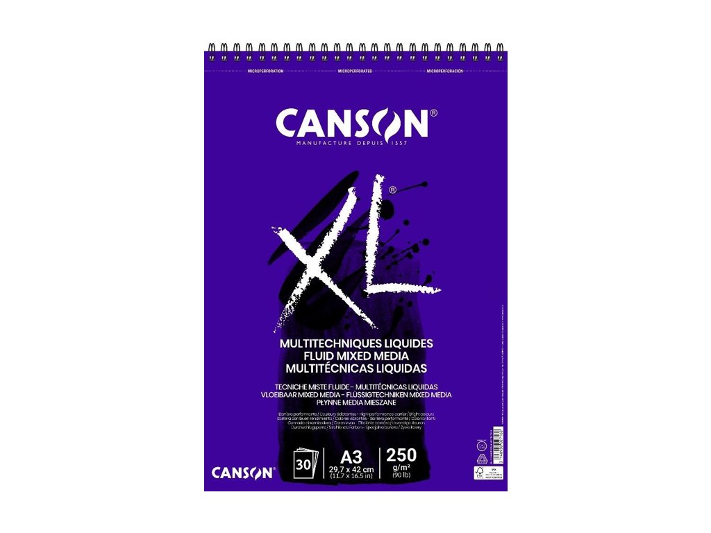 Canson XL Fluid Mixed Media Skicák v kroužkové vazbě A4, 250g, 30 listů