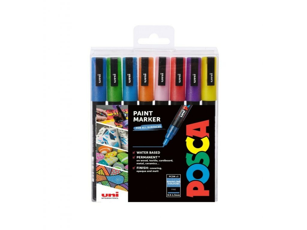 Sada akrylových fixů Posca PC-3M 0,9-1,3 mm, třpytivé odstíny 8 ks