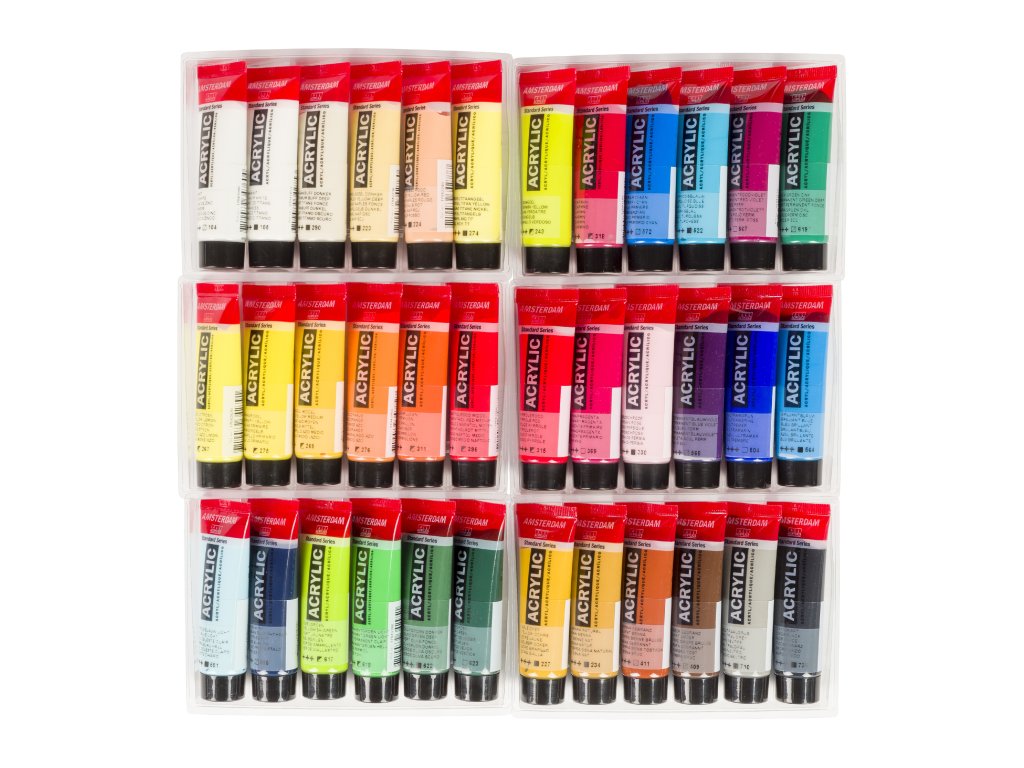 Akrylové farby Amsterdam Standard prináša najširšie spektrum mimoriadne sýtych akrylových farieb, ktoré sú vyrobené zo 100% akrylovej emulzie a vysoko kvalitných pigmentov. Tento produkt vám zaručuje vynikajúcu svetlostálosť a umožňuje voľbu priehľadnosti podľa vašich potrieb. S farbou strednej viskozity sa ľahko pracuje a dá sa s ňou pri aplikácii dosiahnuť hladké farebné plochy.