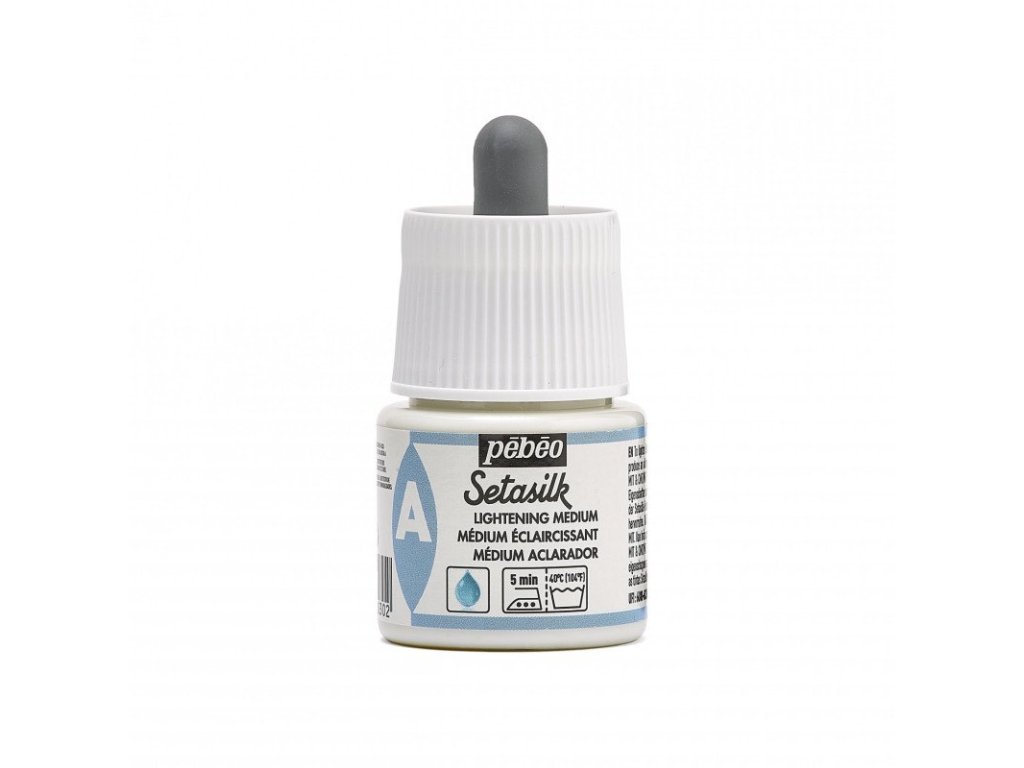 Zesvětlovací médium Pébéo Setasilk 45 ml umožňuje vytvořit světlejší odstíny barev Setasilk na hedvábí, a to bez snížení kvality a bez zředění.